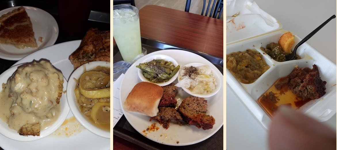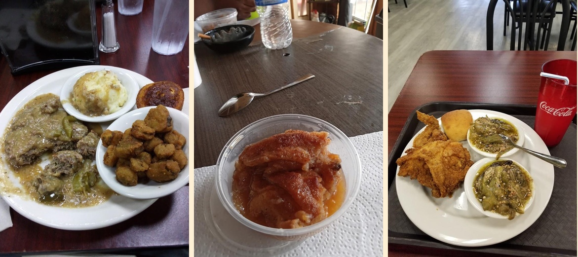 "Food was so delicious i couldn't decide what to eat so i got everthing i wanted and brought the rest back home on the plane with me Catfish greens meatloaf spaghetti turkey neck baked chicken dressing gravy and cornbread! Lol Yum! Keep on doing a great job. Oh and the lemonade and tea topped my meal off!"